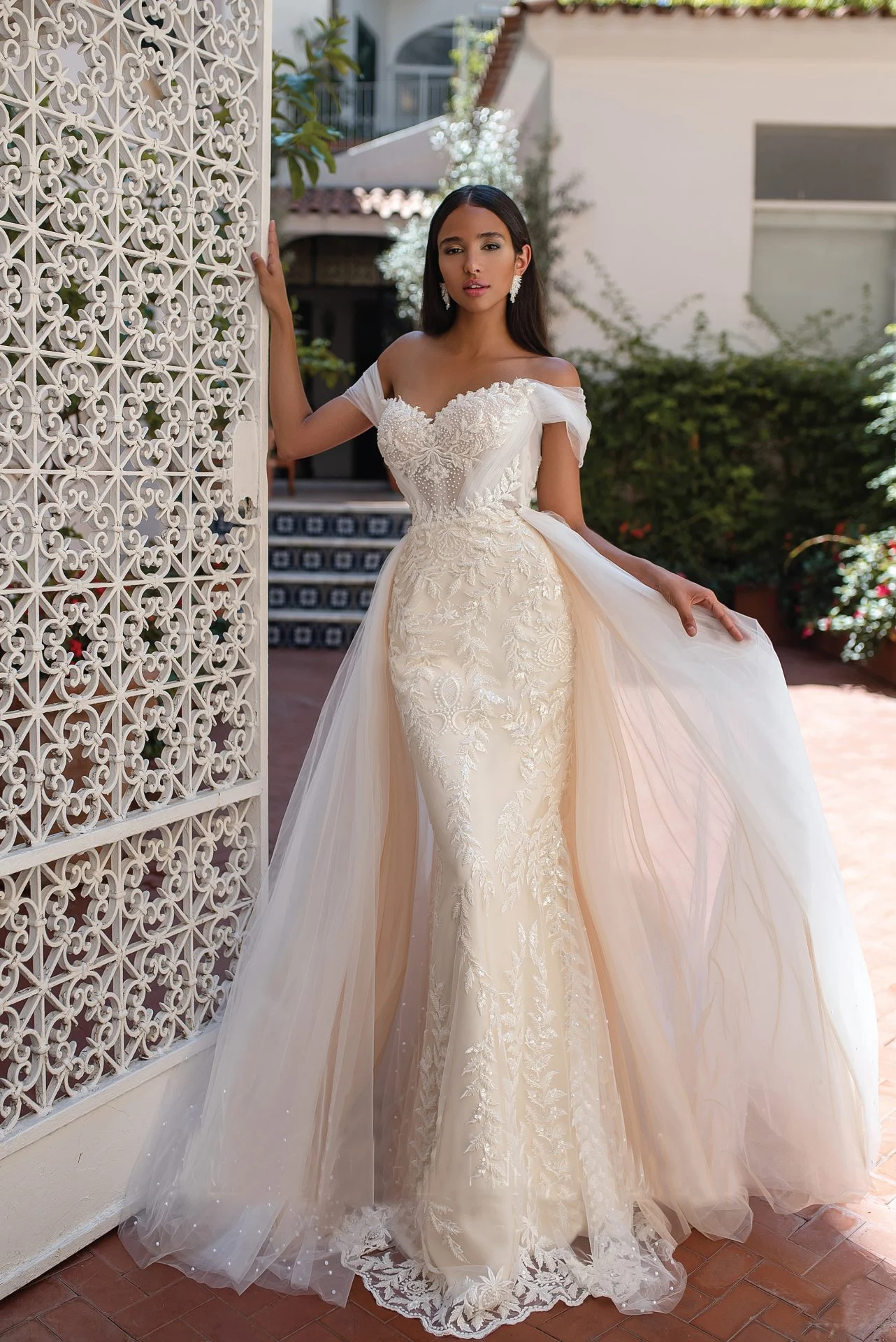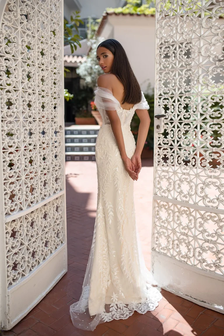Venčanica Galena je prava definicija sofisticiranosti. Kombinacija luksuzne čipke i tila stvara neodoljiv vizuelni efekat, dok asimetrični kroj sa prozračnim rukavima dodaje dinamiku. Sirena kroj savršeno pristaje svakoj figuri, dok delikatni ukrasi na leđima i struku upotpunjuju celokupan izgled. Galena je idealna za mladu koja želi da ostavi snažan utisak i zablista u svom posebnom danu.
