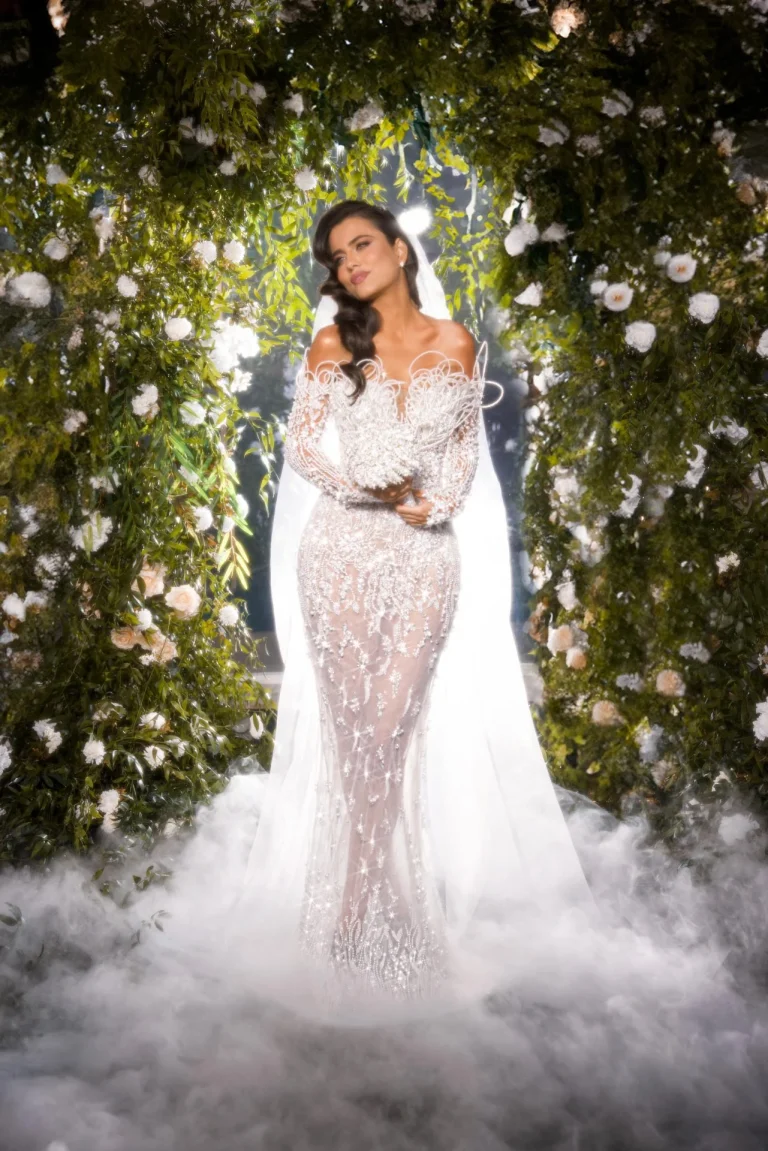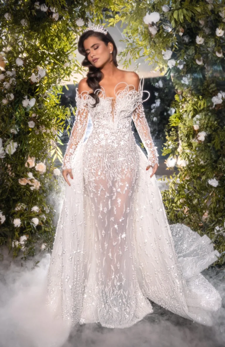 Nesvakidašnja venčanica koja kombinuje autentičnu sirenu sa interesantnom dekoracijom na korsetu. Dekoracija je ručno vezena velikim brojem kristala i perlica, čineći ovu venčanicu zaista jedinstvenom. Venčanica se može nositi sa ili bez podsuknje, dok veliki šlep daje glamurozan i efektan izgled.